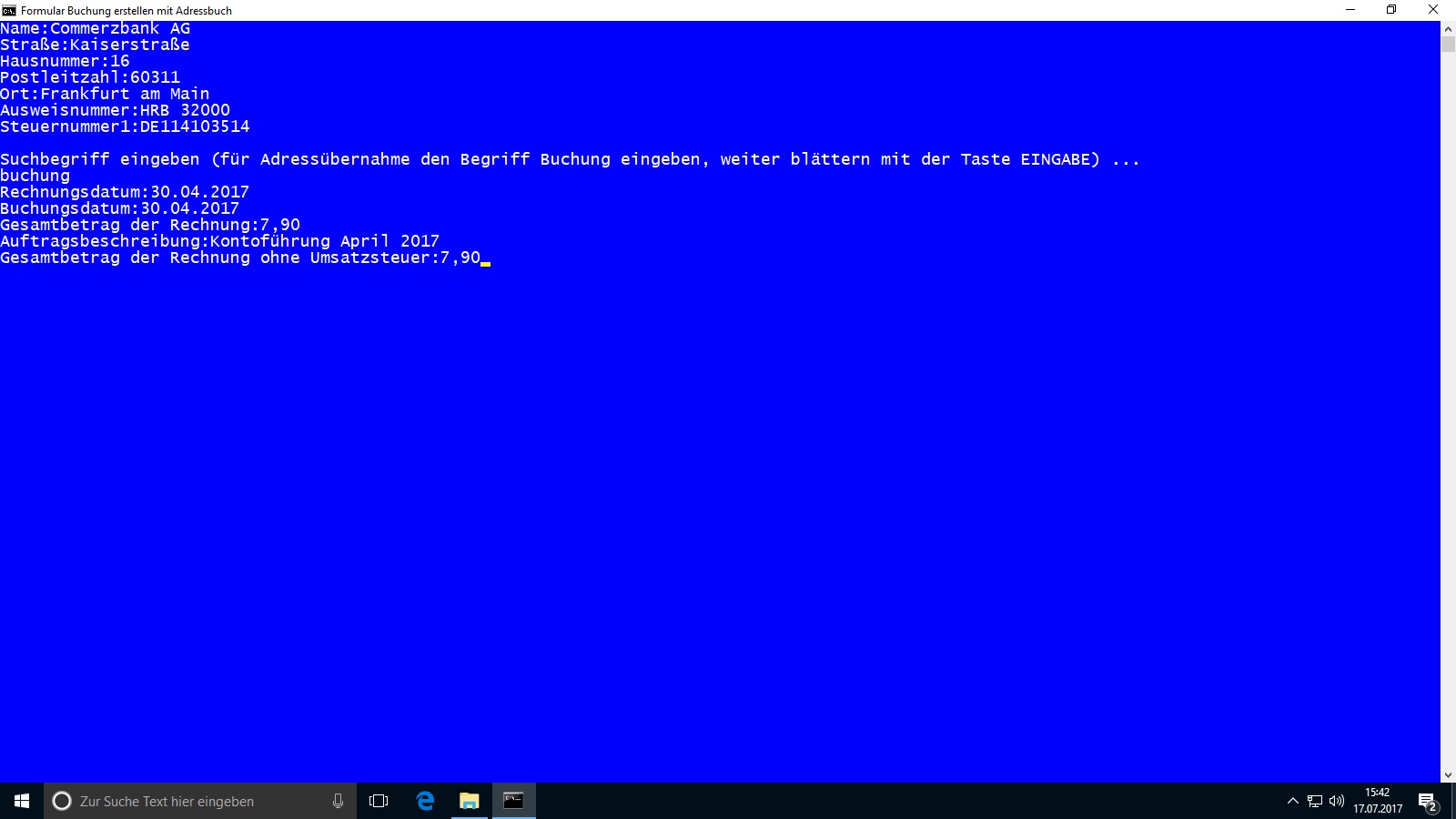 Buchhaltung Formular Buchung erstellen mit Adressbuch