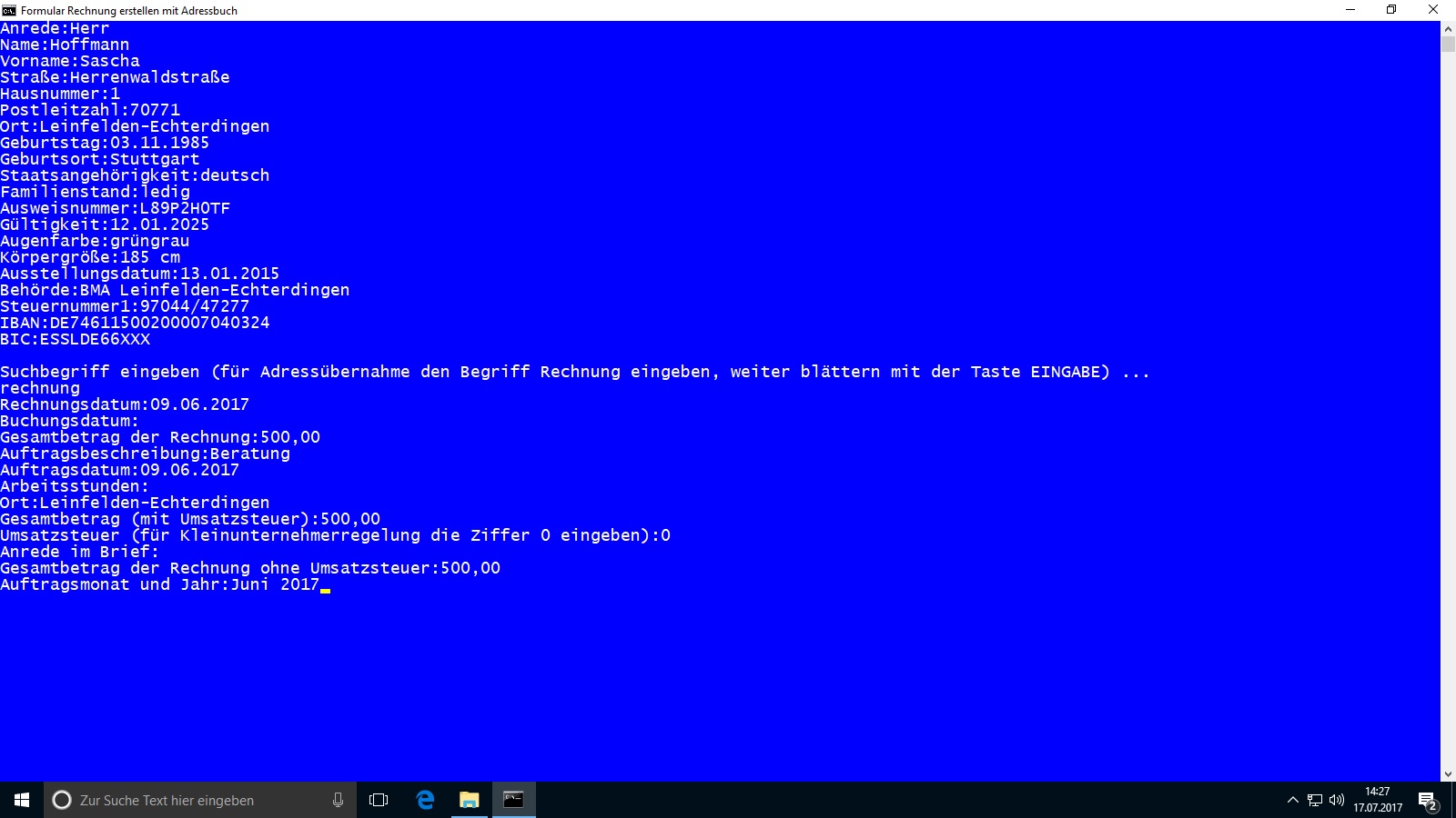 Buchhaltung Formular Rechnung erstellen mit Adressbuch