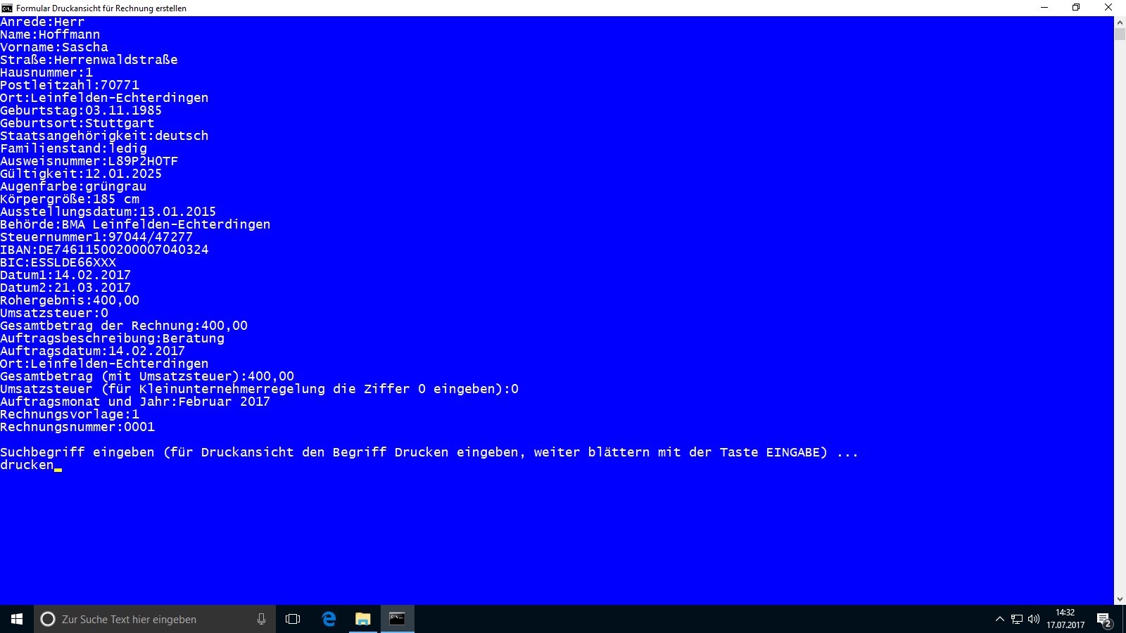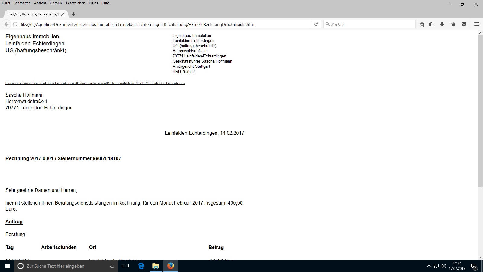 Buchhaltung Formular Druckansicht für Rechnung erstellen