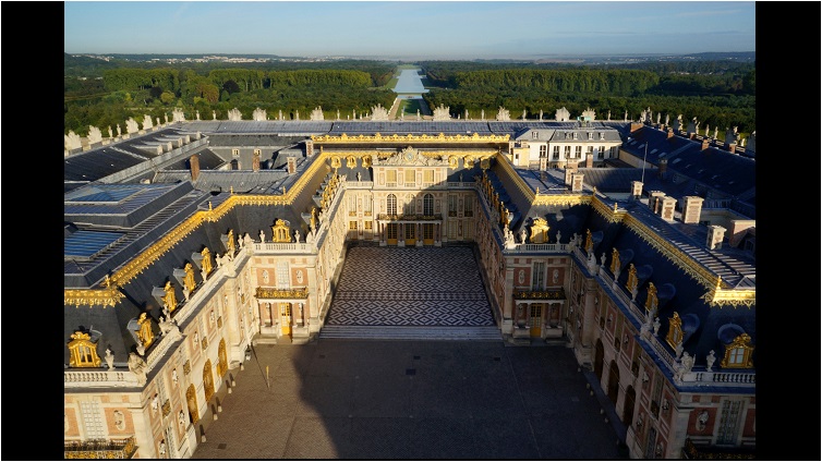 Das Video zeigt ein Standbild vom Schloss Versailles bei Paris in Frankreich. Zu sehen sind der Marmorhof und der Königshof. Im Marmorhof führten die Tänzer Veranstaltungen vor.