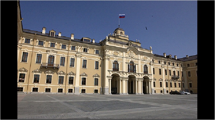 Das Video zeigt ein Standbild vom Konstantinpalast. Dieser befindet sich in Strelna in der Nähe von Schloss Peterhof.