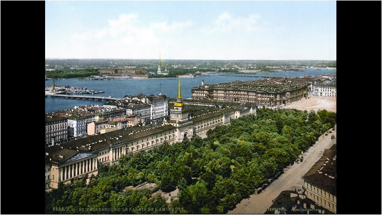 Das Video zeigt ein Standbild von der Admiralität. Es handelt sich um ein Gemälde aus dem Jahr 1890.