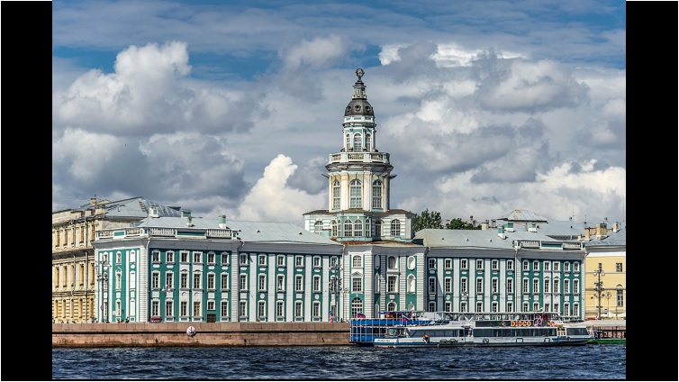 Das Video zeigt ein Standbild von der Kunstkammer. Das Gebäude befindet sich in der Innenstadt von Sankt Petersburg in der Nähe vom Winterpalast.