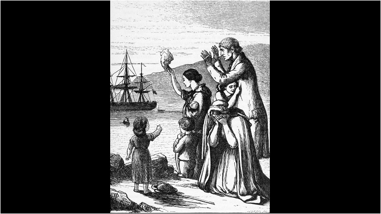 Eine fiktive Darstellung aus dem Jahr 1868 von einer Auswanderung in Irland.