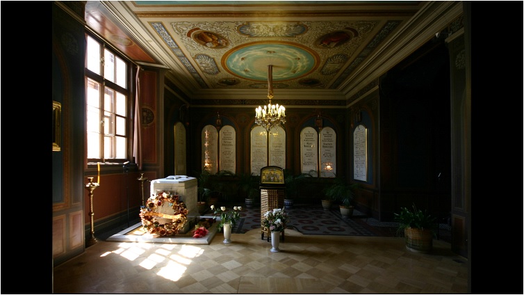 Das Video zeigt ein Standbild von der Kathedrale der Peter und Paul Festung. Zu sehen ist der Grabraum von Nikolaus II. welcher von 1894 bis 1917 Zar war. Im Jahr 1917 wurde die Zarenfamilie ermordet.