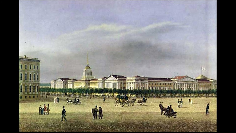 Das Video zeigt ein Standbild von der Admiralität. Es handelt sich um ein Gemälde aus dem Jahr 1810.