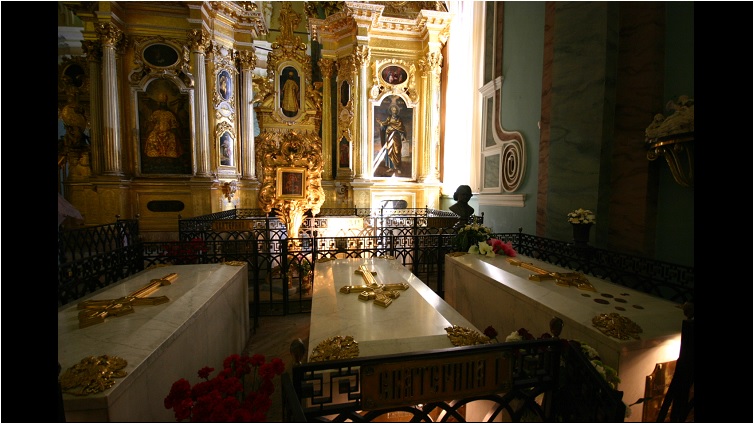 Das Video zeigt ein Standbild von der Kathedrale der Peter und Paul Festung. Es handelt sich um den Grabraum der Zaren.
