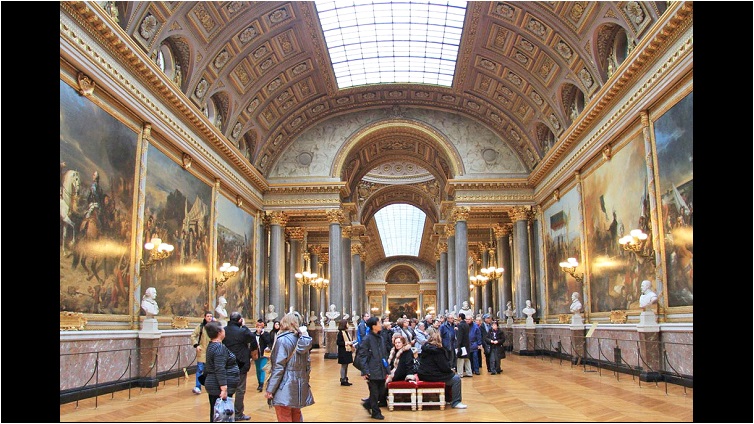 Das Video zeigt ein Standbild vom Schloss Versailles bei Paris in Frankreich. Zu sehen ist eine Bildergalerie im Innenbereich vom Schloss.