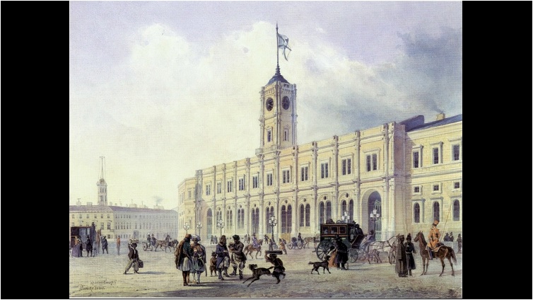 Das Video zeigt ein Standbild vom Moskauer Bahnhof. Die Aufnahme stammt aus dem Jahr 1851.