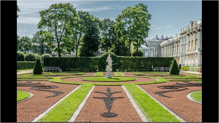 Das Video zeigt ein Standbild vom Katharinenpalast. Es handelt sich um den Park an der Rückseite des Gebäudes.