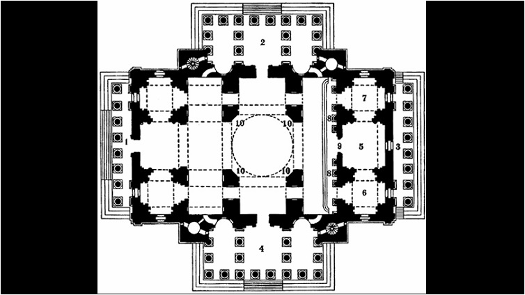 Das Video zeigt ein Standbild von der Isaakskathedrale. Es handelt sich um die Zeichnung vom Grundriss der Kirche.