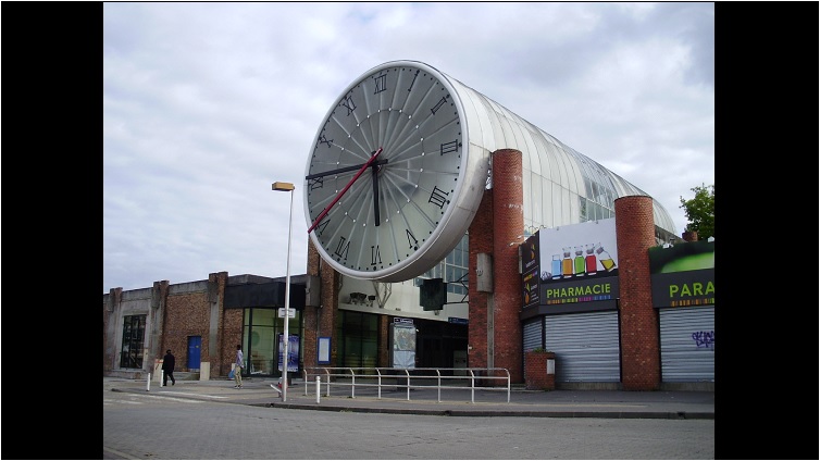 Ein Bild von der Uhr am Bahnhof Cergy Le Haut.